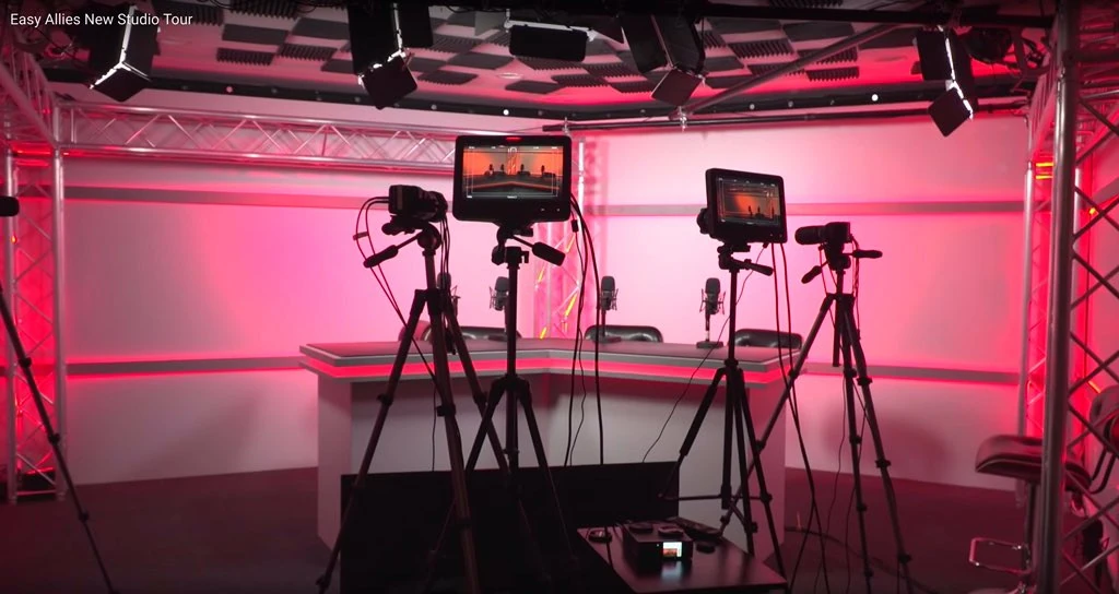 On June 21, 2018, Easy Allies reached a set Patreon goal of $50,000 per month to acquire a studio. They announced they were moving into a studio on December 4, 2018 and officially moved production on January 29, 2019. They christened the studio with a video tour and Studio Launch Party that included a playthrough of Monopoly Plus for PlayStation 4.[13] Facilities include a main stage for filming podcasts and produced content, control room for the main stage, a streaming stage with multiple couches, an office area, library, and green room.